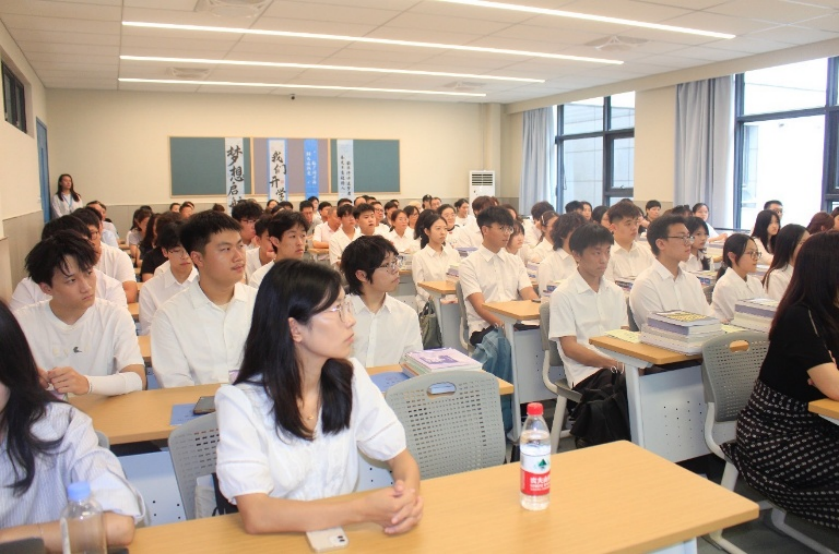 随后,林燕、卢鸿艳、郭蓓蓓及李童老师依次登台发言。林燕老师从学院教学管理与育人理念出发,围绕校园生活适应、学习节奏把控等维度,为新生快速融入校园、衔接国际教育氛围提供清晰方向指引;卢鸿艳老师、郭蓓蓓老师则分别针对昆士兰理科定向班与新加坡商科定向班,详细拆解课程版块设置、阶段性考核标准及海外升学核心门槛,让新生与家长精准掌握“两年国内 + 两年国外” 的培养节奏;李童老师则特别介绍了“昆士兰学业指导”服务,明确将通过定期学业答疑、知识点梳理、学习方法点拨等形式,为昆士兰项目新生提供常态化学业支持。四位老师的分享既传递了培养要求,更从适应引导、学业保障等层面构建起全方位支持体系,助力新生平稳开启国际教育阶段的学习,为后续成长筑牢根基。