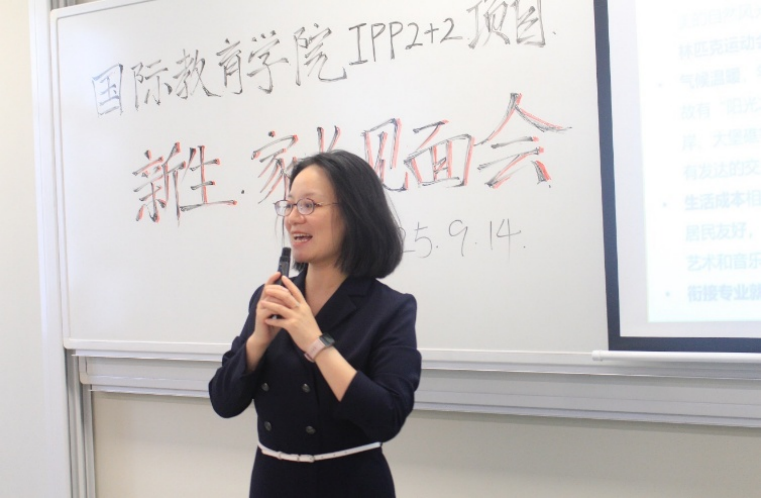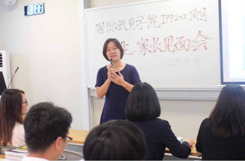 会议伊始,陈应副校长代表学院致欢迎辞。她系统回顾学校国际化办学脉络,从早期国际交流合作的探索起步,到如今 IPP 2+2 项目的成熟运行,学校始终以培养全球化人才为核心。陈应副校长对 2+2 项目寄予厚望,期待学子在国内两年夯实专业与语言基础,在海外主动融入多元文化,成长为复合型人才。同时,学院将构建完善的家校协同育人机制,通过多维度服务为新生深造之路保驾护航。