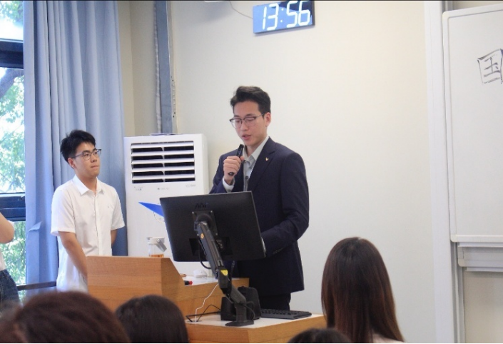 2024级商科学生代表林驰博结合自身经历,分享语言提分与课业平衡的实用心得。他的经验分享干货满满,有效点燃了学弟学妹的学习信心,赢得现场阵阵掌声。