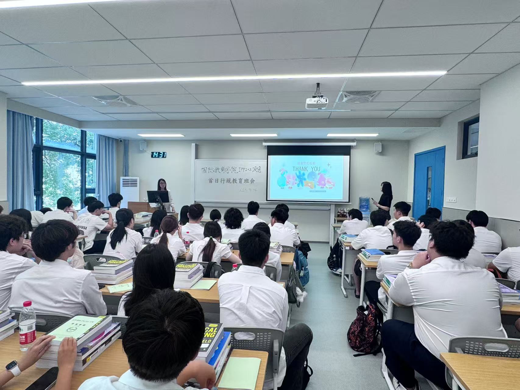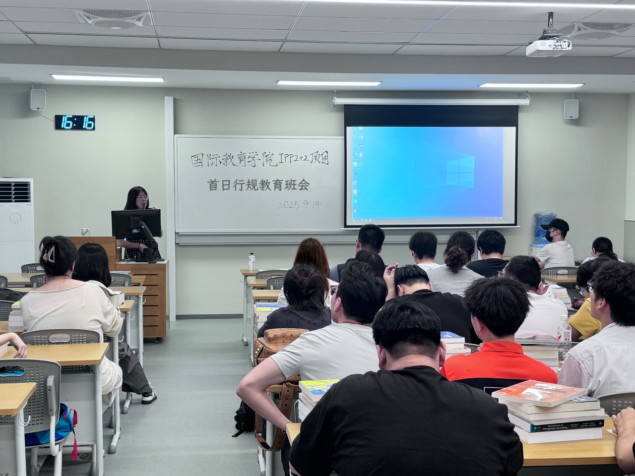 2025年9月14日开学报到当天,IPP2+2项目学工老师组织大一、大二年级开展首日行规教育班会。这场班会不仅是校园纪律的“宣讲会”,更是为学生未来发展赋能的“启航课”,旨在通过清晰的规范引导,让每一位学生都能在有序的校园环境中专注学习、健康成长,逐步成长为有纪律、有担当、有素养的新时代青年。