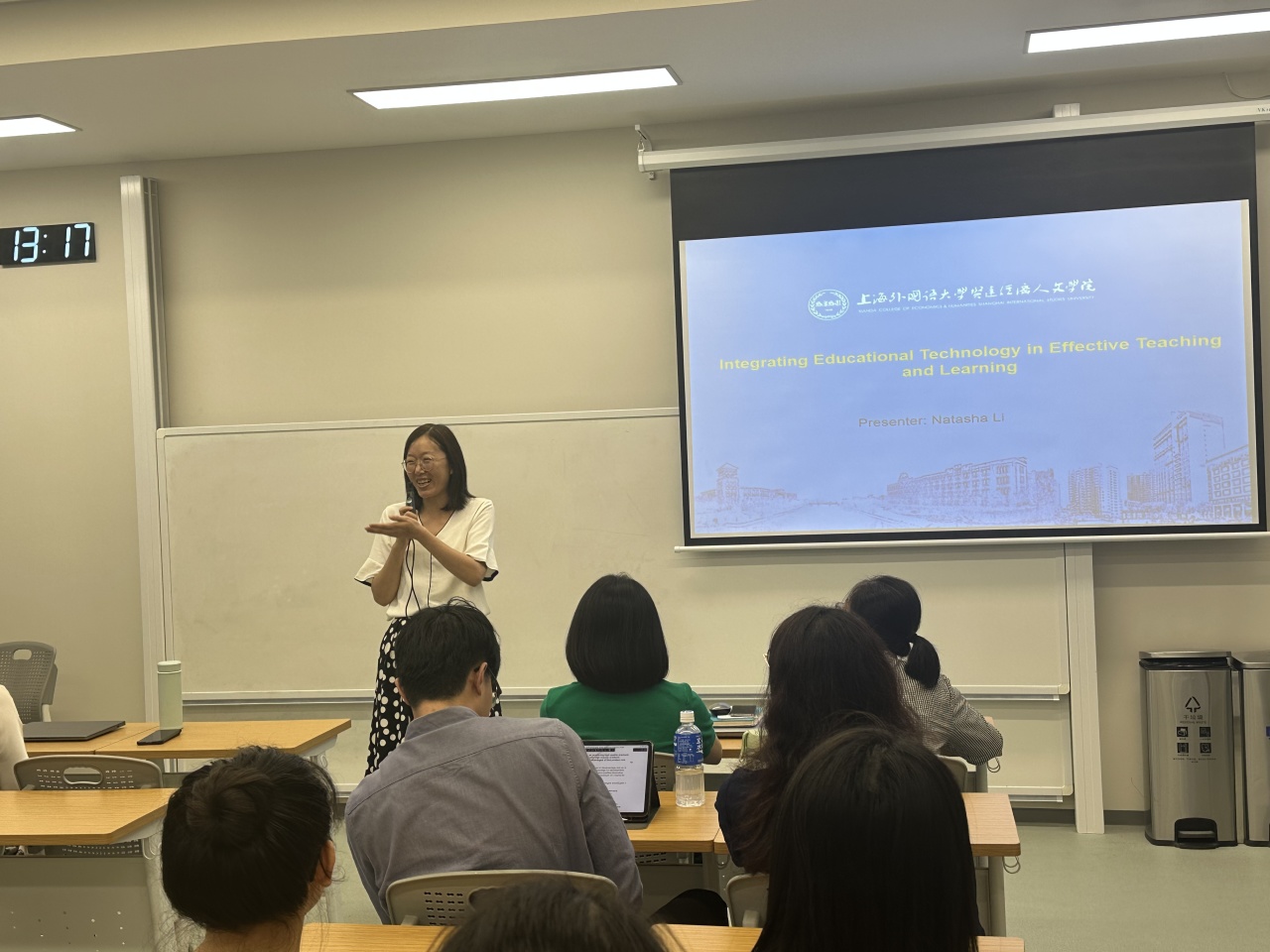 李德霞老师围绕“融合教育技术,促进有效教学与学习”主题,分享了澳门理工大学访学成果。她重点介绍了AI在语言教学中的创新应用,涵盖听说读写课程的智能化教学路径及生成式AI使用规范,并提出“AI是思维计算器,需智慧运用”的教育理念,倡导教师在人工智能时代重塑角色,以人文精神引领技术融合,真正实现“科技为用,教育为本”。