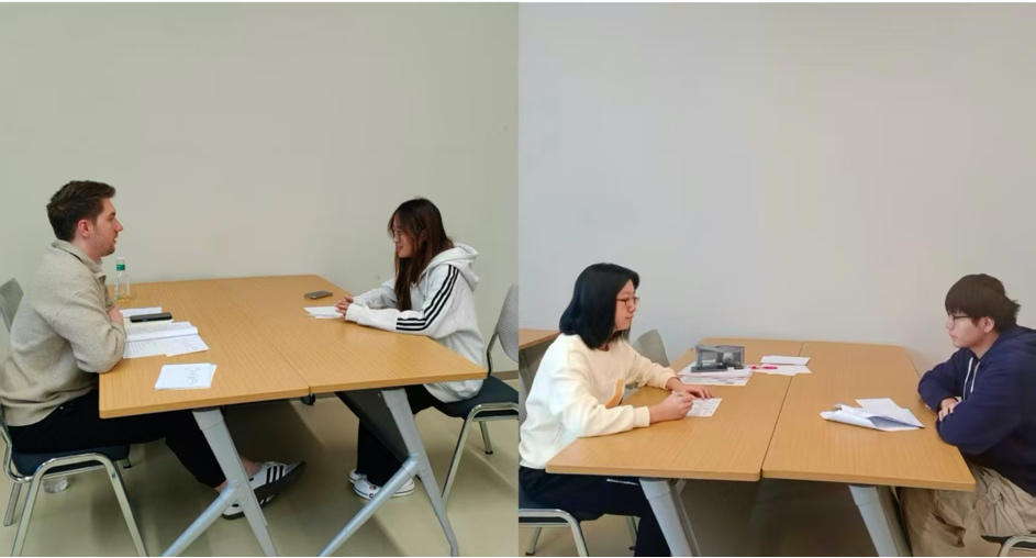 活动紧密围绕雅思口语的考核理念,精心设计贴近生活与学术场景的互动任务,涵盖日常交流、观点阐述、问题应对等环节,引导学生在自然、真实的语境中进行表达与沟通。中外教师团队协同参与教学组织与现场评估,秉持统一评价标准,融合多元教学视角,从语音语调、语言准确性、表达流畅度及逻辑思维等多个维度对学生进行全方位观察与记录。