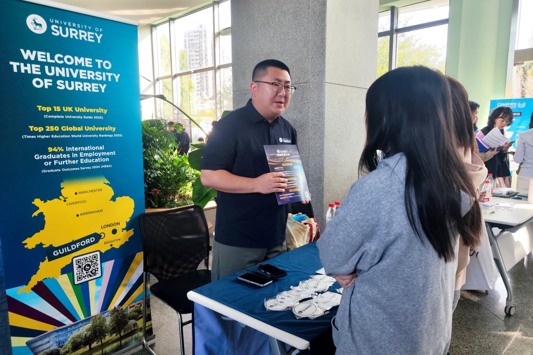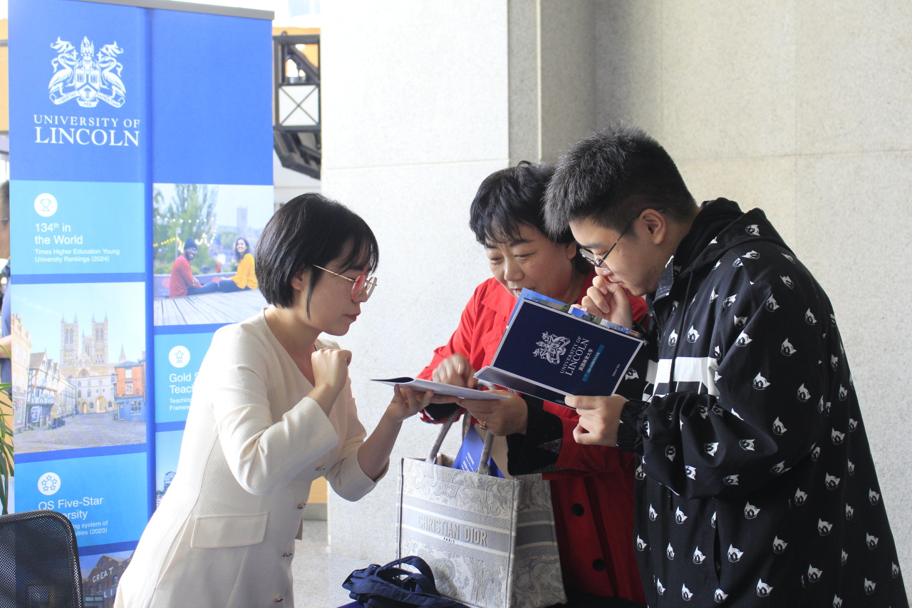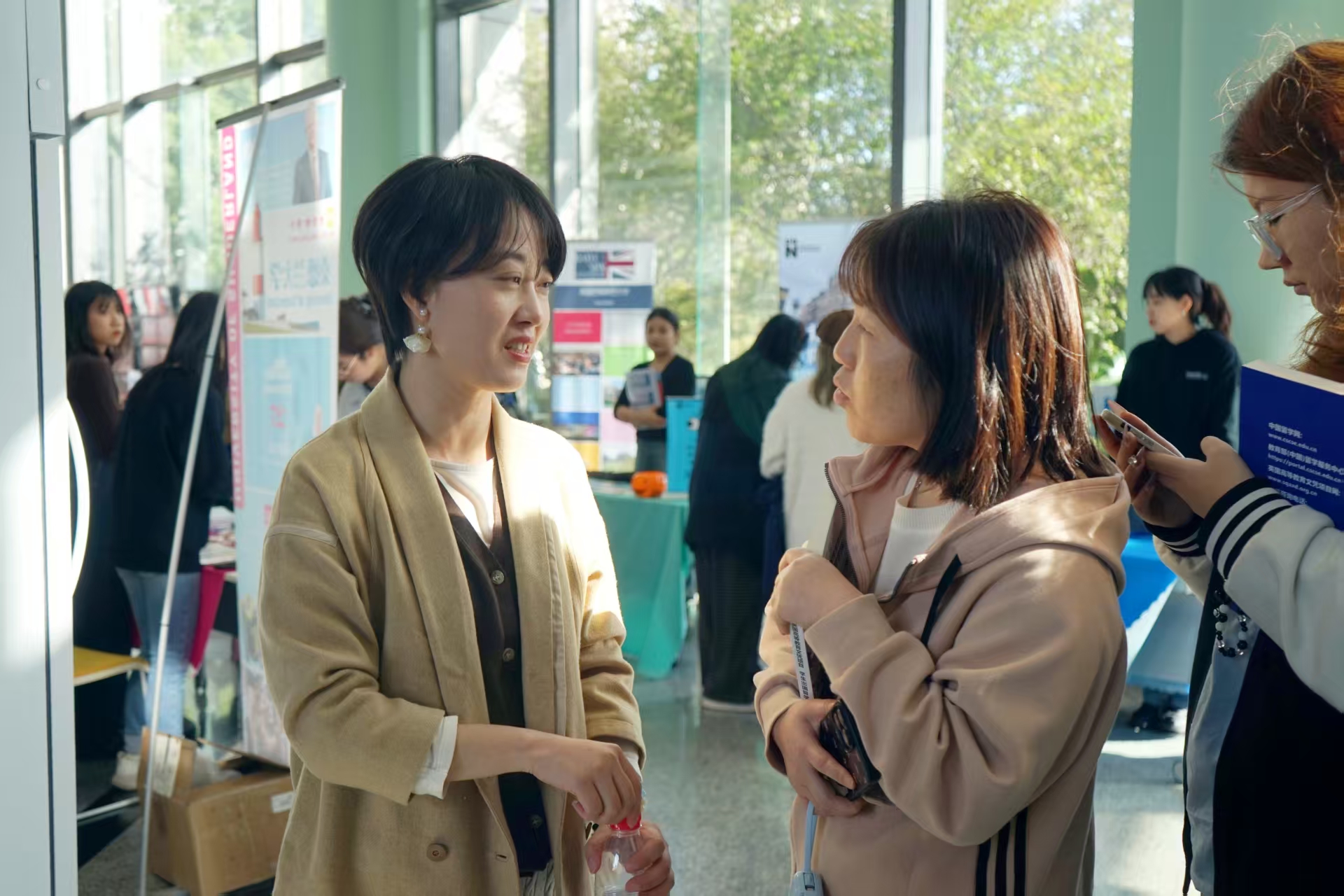 讲座结束后,学生与家长移步至行政楼大厅,参加英国高等教育文凭项目高校交流会。现场气氛热烈,33所海外院校的校方代表齐聚一堂,为学生及家长提供一对一的咨询与指导。值得一提的是,本次活动不仅面向23级学生,也有序组织24级学生分批次参与,旨在让同学们提前了解海外院校的专业设置、学业要求等,科学做好学业规划,为未来留学之路奠定坚实基础。
