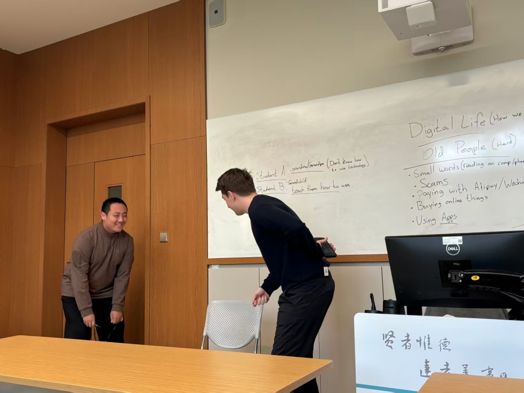 秉持“赋能式思辨教学”这一理念,国际教育学院的外籍教师Eric Emborsky致力于构建一个以学生为中心、激发批判性思维并增强表达自信的英语学习环境。Eric凭借多年专注于英语口语及跨文化交流的教学经验,他坚信语言学习的真正意义在于赋予学生力量——让他们不仅敢于表达自我,还能熟练地进行批判性思考和积极交流。在他的课堂上,学生们不仅仅是在练习语言,更是在一个充满活力的空间里激发思想火花、连接多元文化、展现个人独特的声音。现在,就让我们一同走进Eric那充满魅力的课堂,感受其中蕴含的无限可能吧。