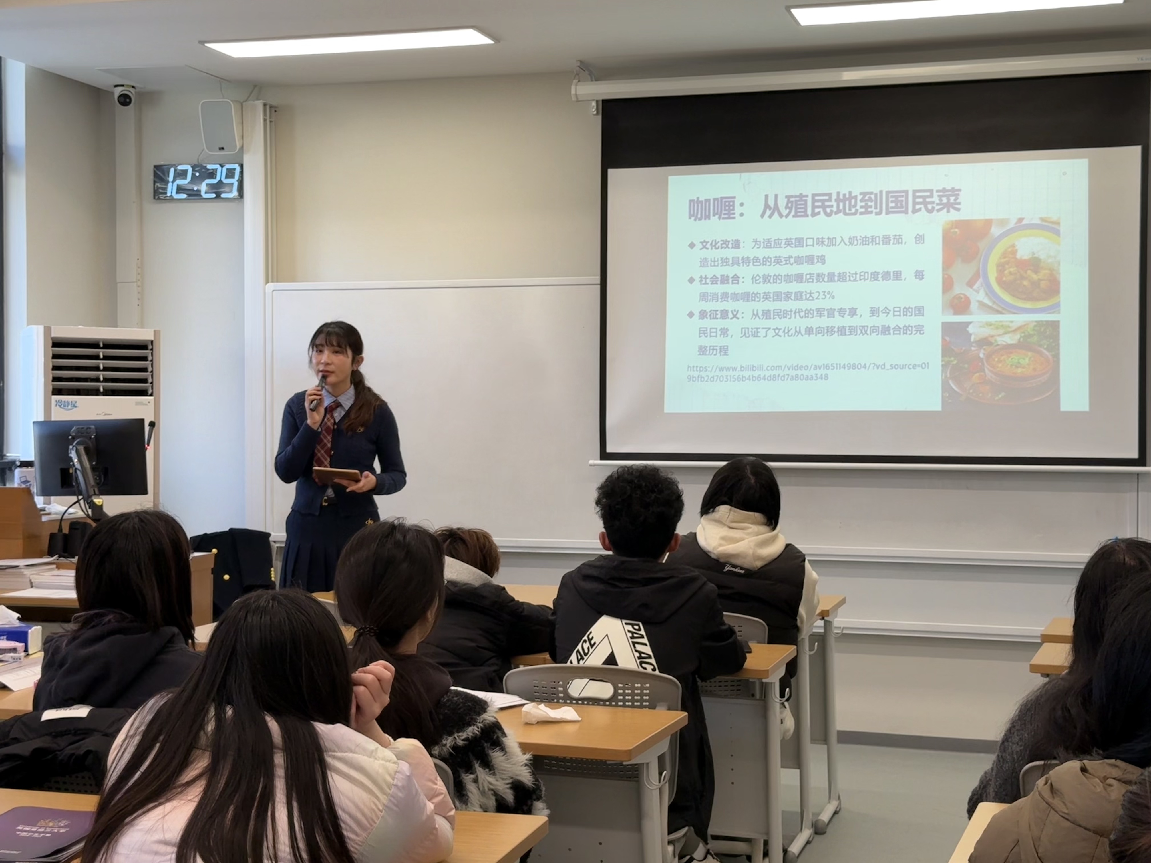 随后,视角从殿堂转向街头。朱老师以“薯条的哲学”为切入点,透过炸鱼薯条等国民食物,揭示其中凝结的工业历史、阶级印迹与集体记忆。她强调,正如王室代表了一种崇高的国家符号,薯条则是嵌入日常的微观符号;二者共同构成理解英国社会的重要线索。整场讲座贯穿“象征与现实”的双重视角,引导学生超越表象,学会拆解文化符号,洞察其背后的意义网络与现实关联。现场互动积极,反响热烈。