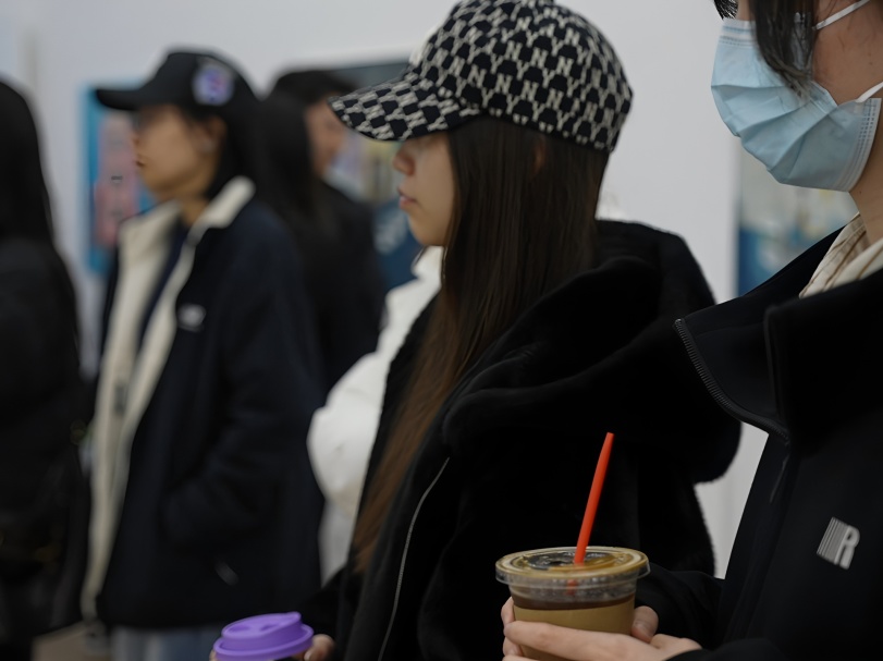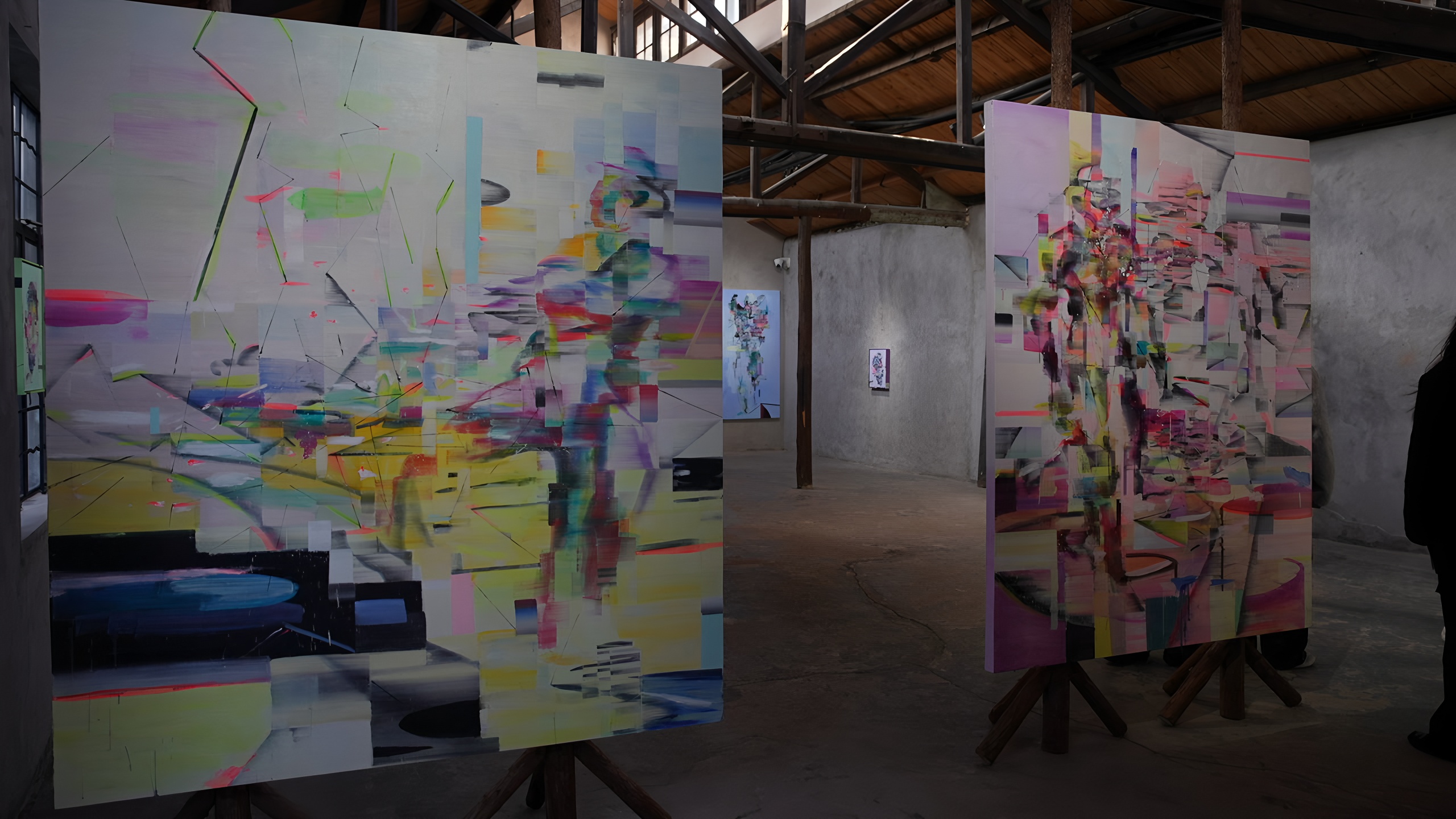 在“凝视的消散”展厅,同学们面对被切割、碎片化的油画,感受到类似“glitch(故障)”的视觉效果。这种断裂与重组的形式,引发同学们对信息过载与注意力分散的思考,并联系自身日常的视觉经验,理解艺术家如何以画面结构回应数字时代的观看方式,从而深化对当代艺术创作逻辑与视觉叙事的认识。