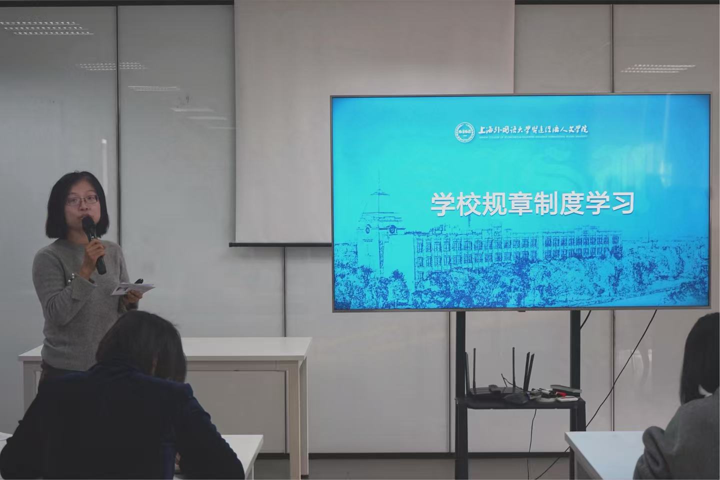 院办主任朱佳静带领全体教职工集中学习学校最新规章制度。她强调,要将制度优势切实转化为治理效能,为学院规范化、精细化管理提供坚实支撑,为学校高质量发展筑牢基础。