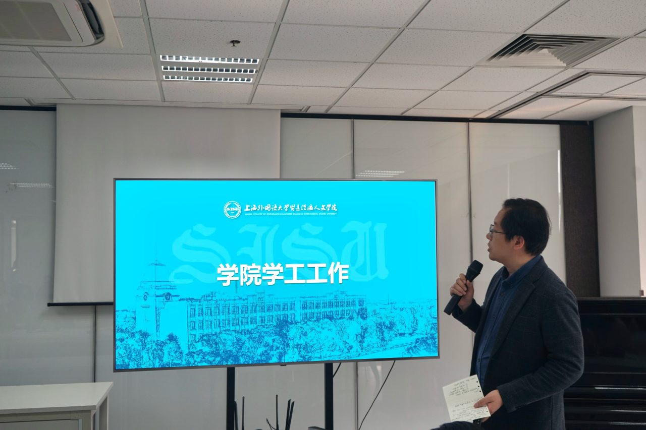 2026 年 1 月 16 日,国际教育学院召开2025年秋季学期期末总结大会暨学习研讨会。会议以深入学习学校深化综合改革方案及最新规章制度为主线,系统回顾本学期各项工作成效,凝聚共识、明确方向,为推动学院高质量发展持续蓄势赋能。上外贤达学院副校长兼国际教育学院院长陈应、学院全体教职工参加会议。