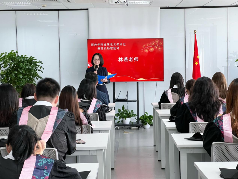 国际教育学院直属党支部书记兼院长助理林燕老师代表国教学院全体教职工,向顺利完成两年学业的同学们致以最热烈的祝贺。林燕老师在致辞中回顾了同学们在贤达的成长轨迹:从适应全英文授课的挑战,到在跨文化交流中展现的从容自信;从专业知识的积累,到国际舞台中的突破,她用“蜕变”与“成长”两个关键词高度肯定了同学们的进步。