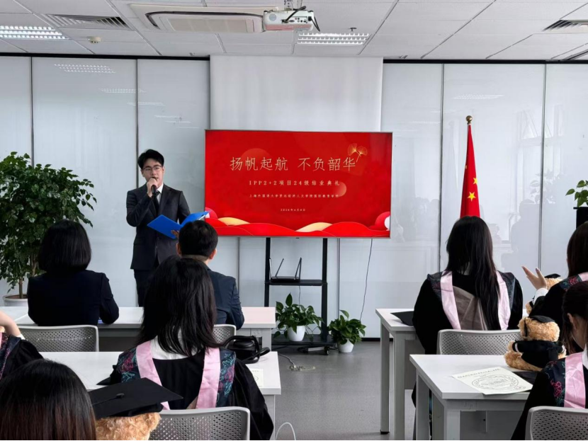 2026年4月9日上午,上海外国语大学贤达经济人文学院国际教育学院IPP 2+2国际本科项目2024级结业典礼于虹口校区行政楼1504室隆重举行。国际教育学院直属党支部书记兼院长助理林燕、院长助理李强、教学主管郭蓓蓓、学工主管李华等教师代表出席典礼。